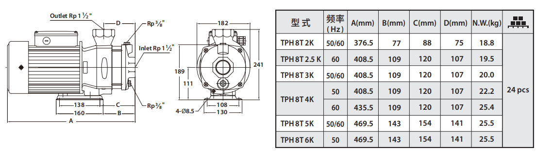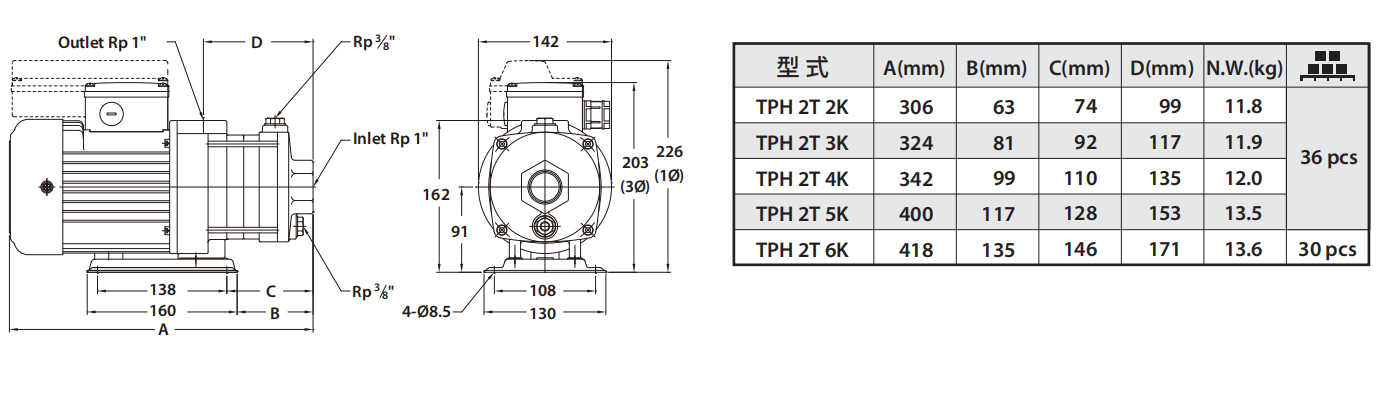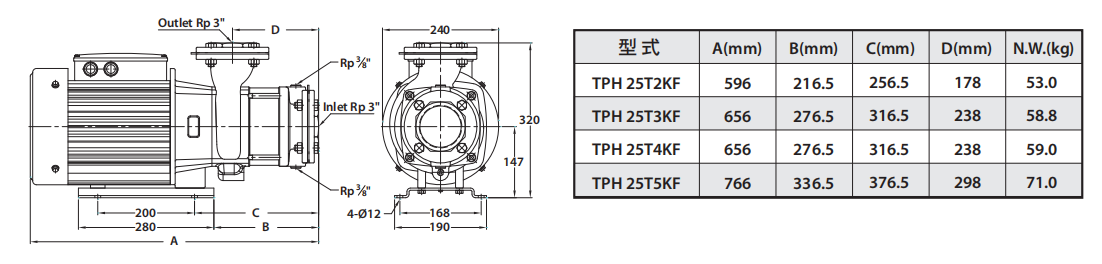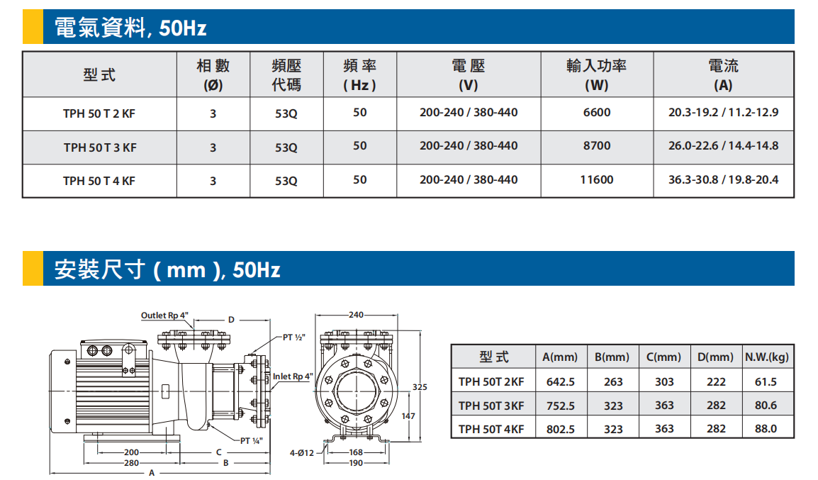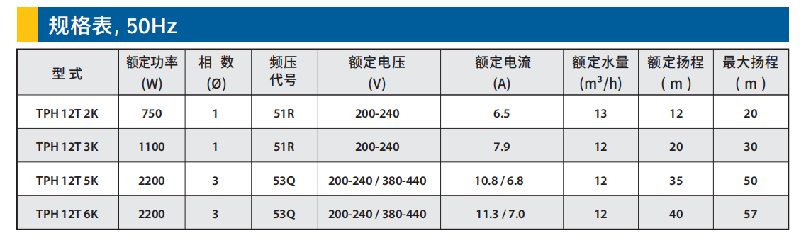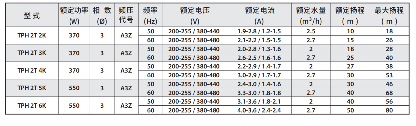 TPH系列多段式离心泵浦,适合一般不含杂质之清 水及液体加压、输送、循环及机械设备之应用。 如: