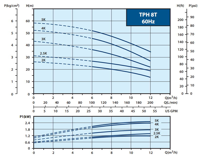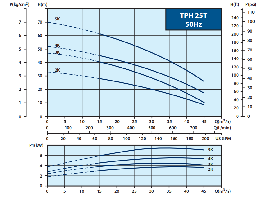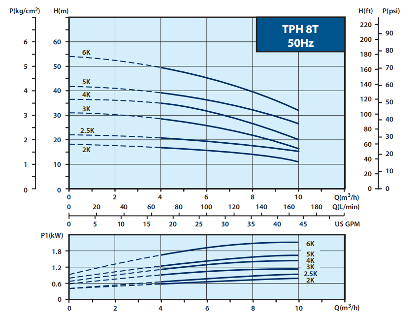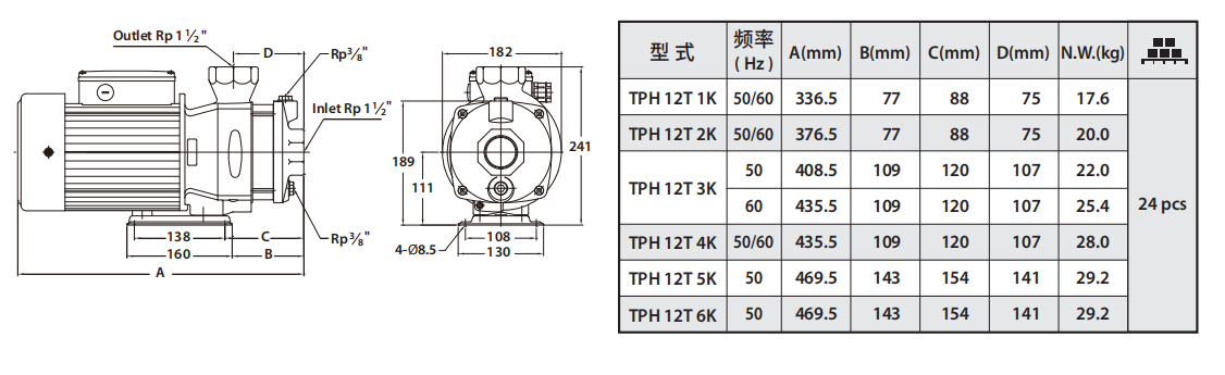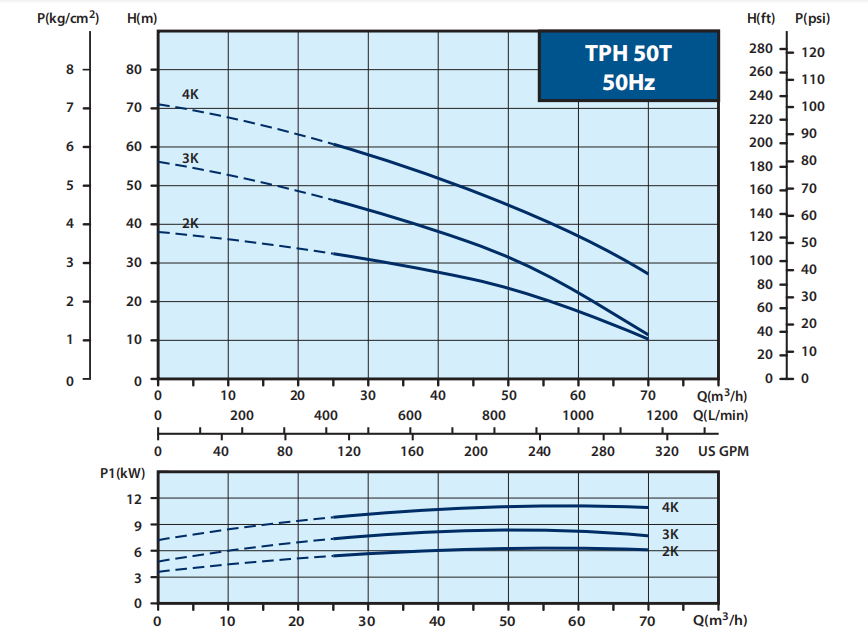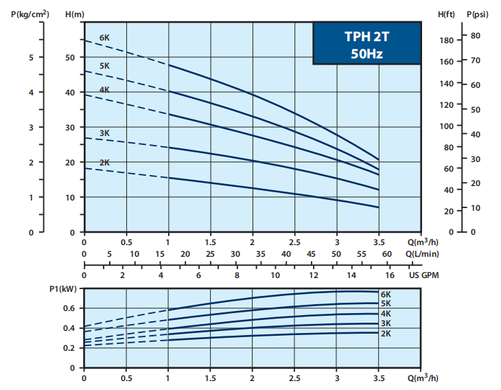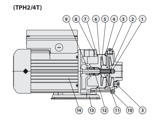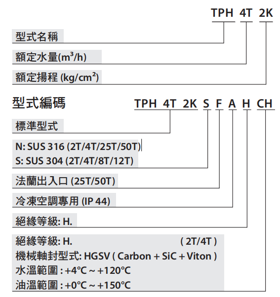 TPH为水平多段式离心泵浦,非自吸,泵与马达同 轴设计,配用机械轴封,叶轮安装在马达延长之轴 心上,轴向入口、迳向出口的紧凑型泵浦机组。