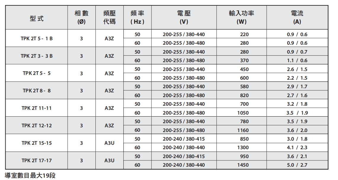 TPK2T技术参数规格表