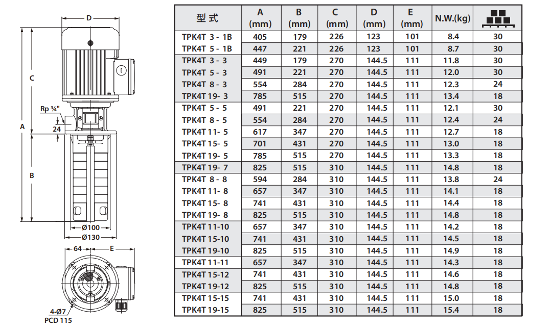 TPK4T技术参数规格表