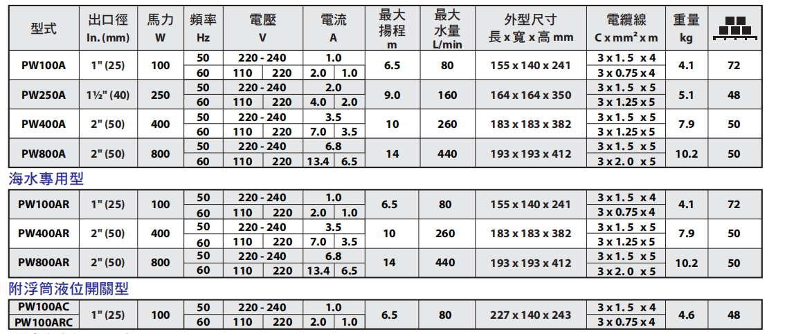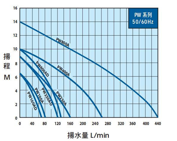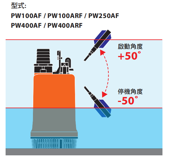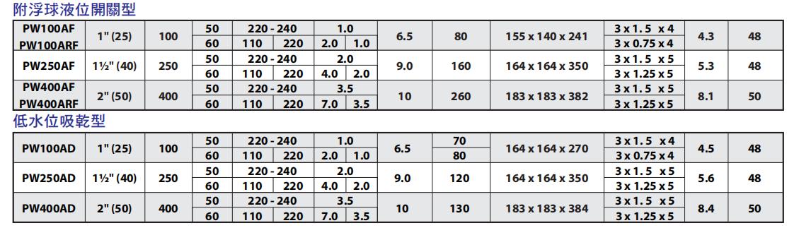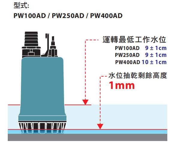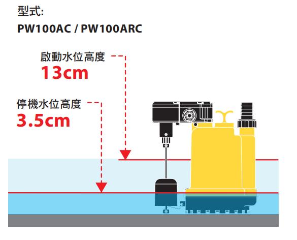 2. 最低工作水位: PW100A : 7 ±1 cm